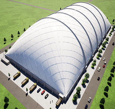無(wú)梁無(wú)柱大跨度空間,跨度可達(dá)180米,空間使用率可達(dá)九成以上,體育、娛樂(lè)、展示等多功能需求均可應(yīng)用,在煤倉(cāng)和污水處理方面也可應(yīng)用。